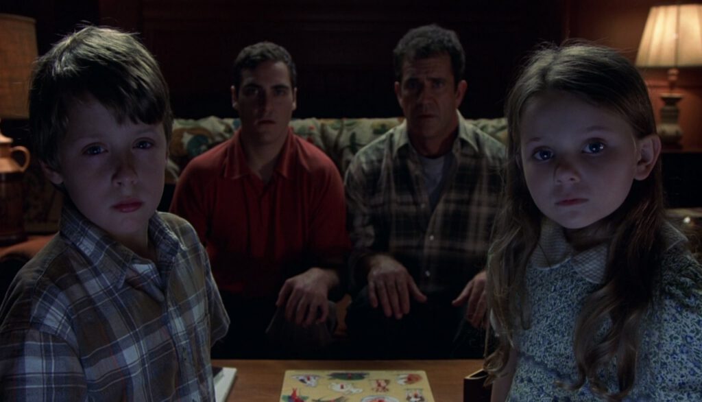 The threat in Signs could’ve been anything: invaders, demons, the weather. The real horror is a family trying desperately to hold itself together in the dark.