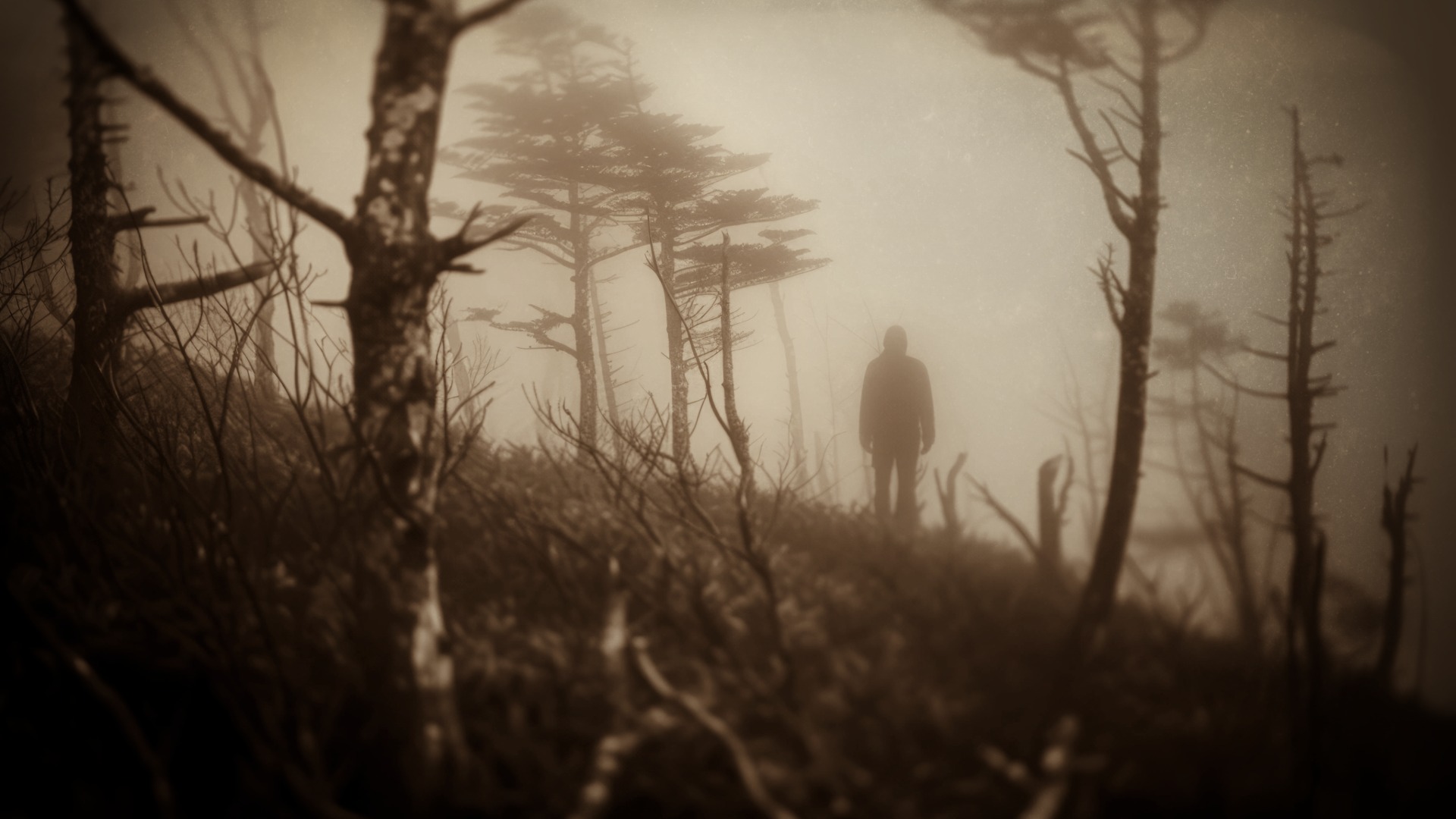 The cold has a sound when it’s deep enough. A hollow ringing under the trees, like the world is shrinking around you. Your breath fogs and vanishes too quickly. The treeline doesn’t look right — something tall stands between the pines, unmoving, barely outlined by the moon.